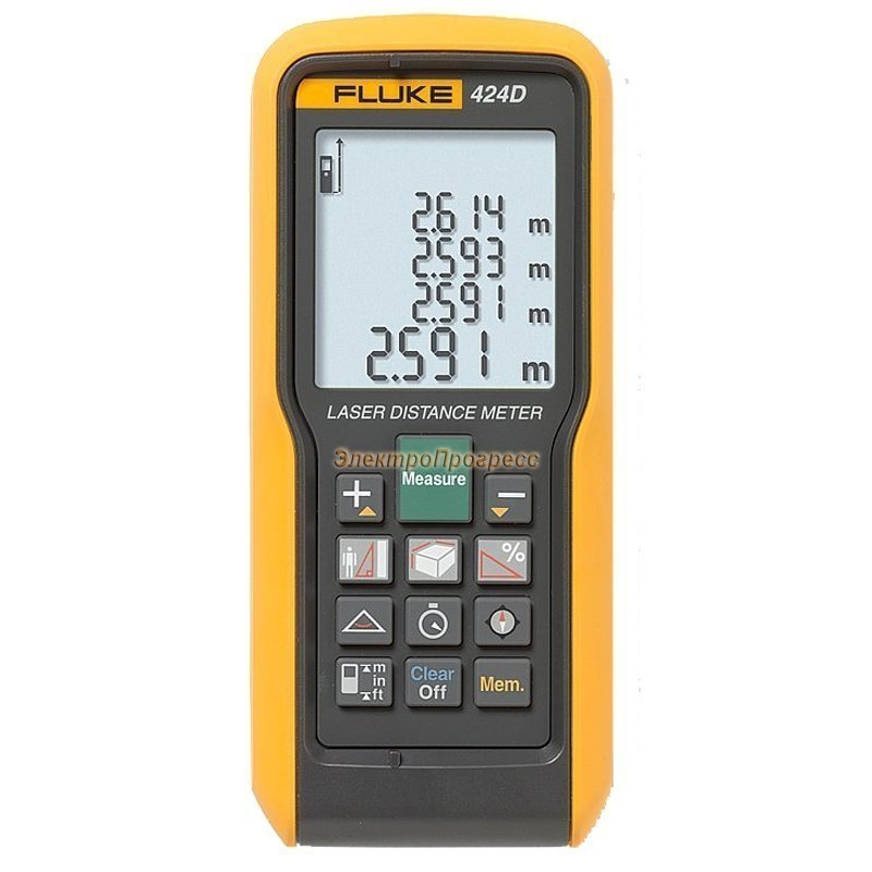 Новая модель Fluke 424D представляет собой самую продвинутую версию лазерного дальномера, оснащенную разнообразными функциями для экономии времени в самых различных ситуациях. Доступное расстояние измерения — до 100 метров (330 футов). Большой четырехстрочный дисплей, встроенный компас и датчик наклона на 180º для измерения высоты.
